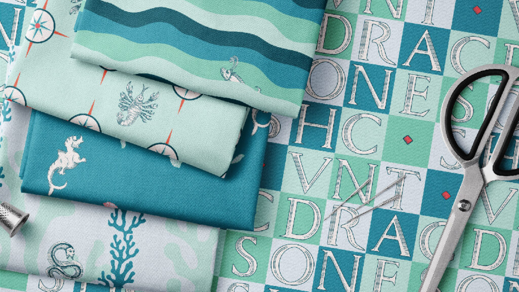 The Here be Dragons collection captures this fascination and transforms the sea monsters of the Carta Marina into modern graphic patterns. Serpentine creatures wind their way through the designs, dragon-like beasts and primeval monsters invite the imagination to wander. It is a playful homage to the Age of Discovery – an invitation to explore the blank spaces of our own imagination and to be inspired by the magic of ancient maps.